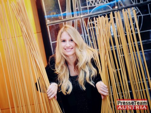 Anna Gasser posiert beim neuen Skydesign Sichtschutz Raumteiler von Graf News