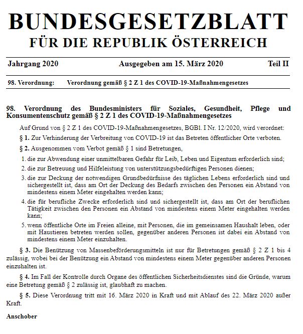 § 1. Zur Verhinderung der Verbreitung von COVID-19 ist das Betreten öffentlicher Orte verboten.