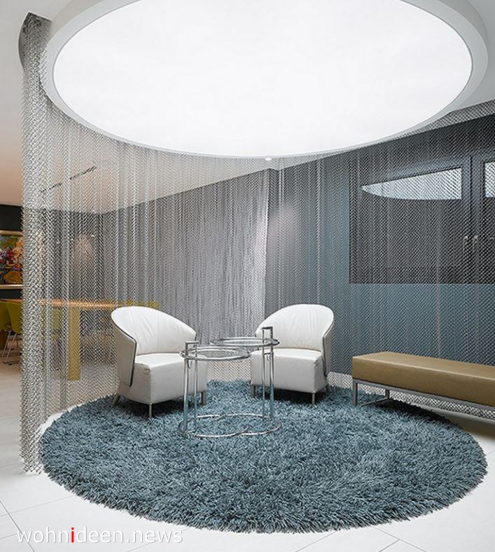Die perfekte räumliche Verwendung eines Raumtrenners ist in einer runden Ausführung mit Fiberglas Stäben und LED Beleuchtung